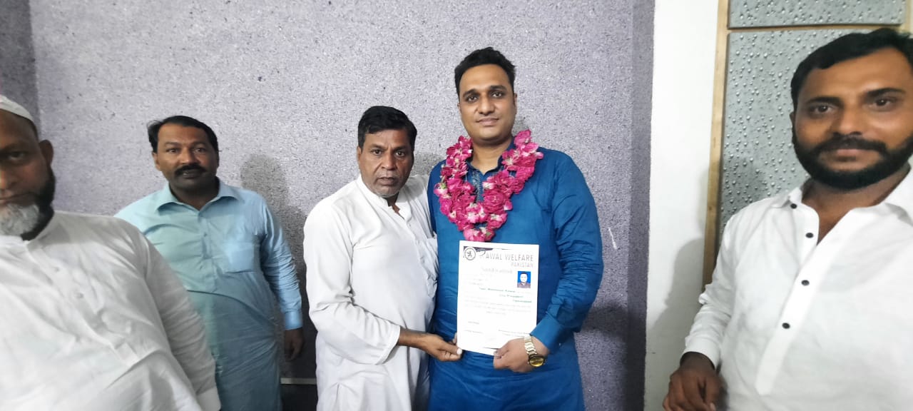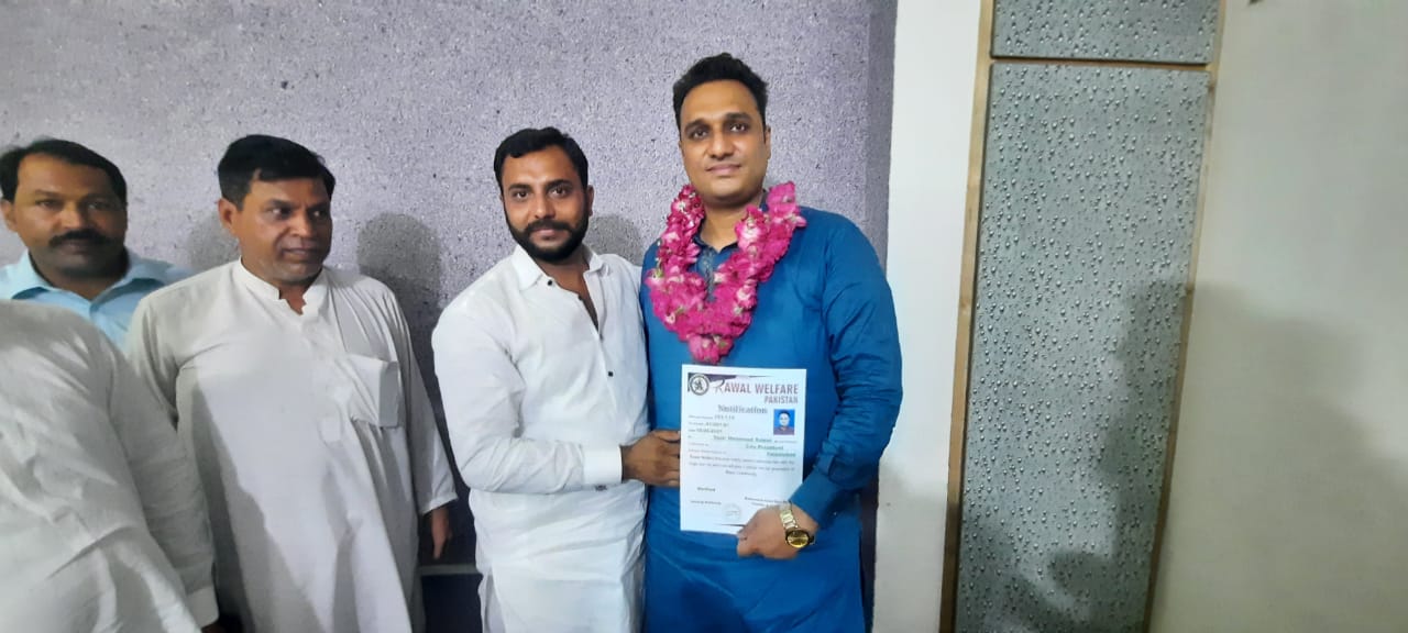 راول ویلفیئر پاکستان کے سینیئر رہنما راشد علی راول کو راول ویلفیئر پاکستان کا مرکزی ترجمان منتخب ہونے پر راول ویلفیئر پاکستان گوجرہ دفتر میں تنظیمی عہدیداران انہیں پھولوں کے ہار پہنا کر مبارکباد پیش کرتے ہوئے۔