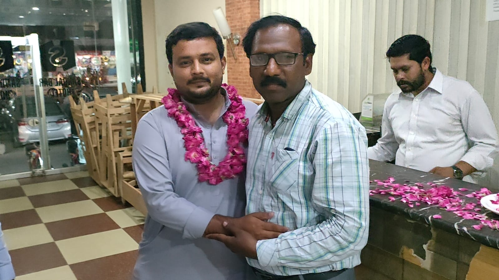 راول ویلفیئر پاکستان کے مرکزی وائس چیئرمین ڈاکٹر انوار احمد راول آف سندھ، سینٹرل کوآرڈینیٹر انجینیئر محمد عباس راول،ترجمان راشد علی راول،ممبر سپریم کونسل چوہدری شہزاد پہلوان راول کی سمندری آمد کے موقع پر مرکزی چیئرمین محمد اعظم رضا راول پھولوں کے ہار پہنا کر ان کا شاندار استقبال کرتے ہوئے۔